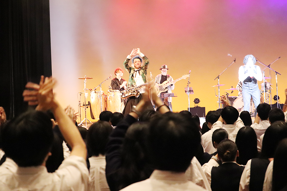 プログラムの中には、本校の校歌をアレンジした曲も披露してくださいました。