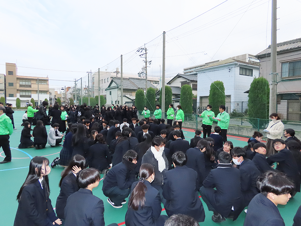 前回は3年生に参加を呼びかけ実施されましたが、2回目の今回は2年生の有志とJRC部員、後期生徒会執行部合わせて200名以上が参加しました。
