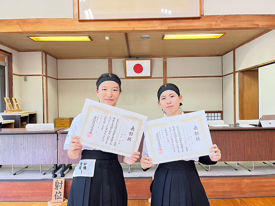 また、県大会に先立って10月25日(土)に日本ガイシスポーツプラザ弓道場で行われた名南支部予選では大川さんが女子個人2位、伊藤さんが3位に入賞しました。
