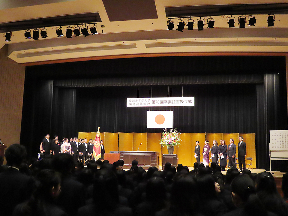 2月24日(火)、最高気温が20℃近くまで上り、春本番を思わせる陽気のもと第78回卒業証書授与式が岡谷鋼機名古屋公会堂で挙行されました。