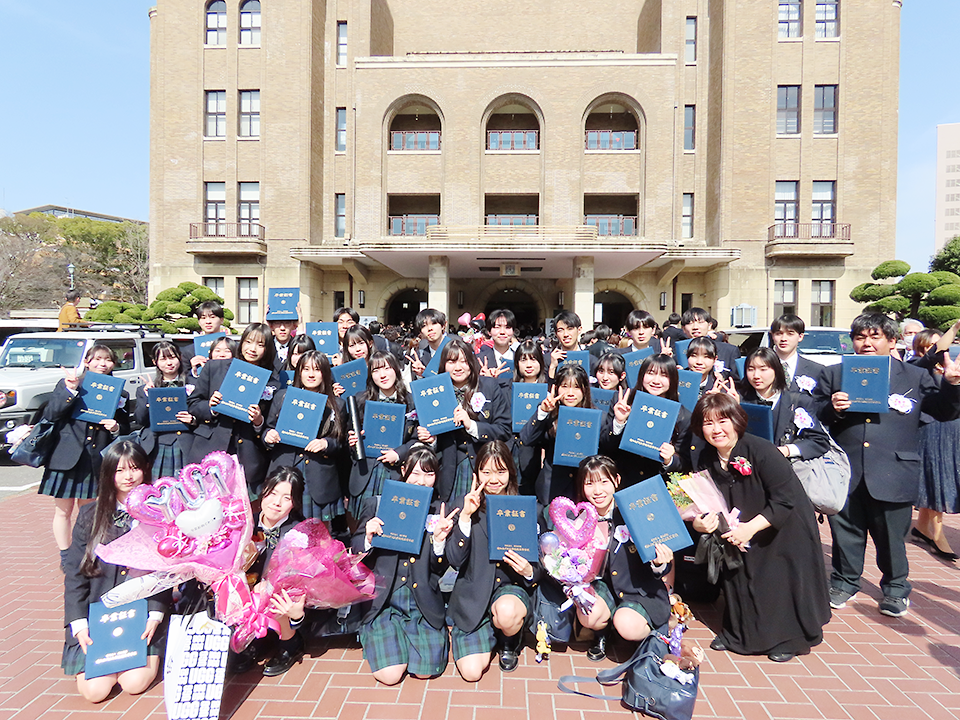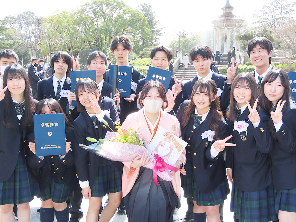 会場がある鶴舞公園は桜の名所として知られますが、式後に卒業生を囲む家族や後輩たちの祝福の輪は、さながら自慢の桜が満開に咲き誇る光景を思わせる華やかさでした。